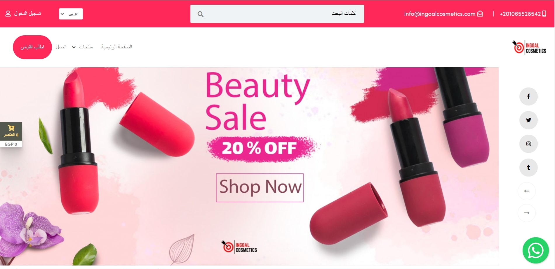 موقع إن جول كوزمتكس هو موقع مخصص لبيع منتجات العناية بالبشرة تم تصميمه لكي يعرض المنتجات الخاصة بالشركة بشكل احترافي و جيد و تم تصميم صفحة تواصل من أجل وصول افضل بين العملاء و الشركة كما تم تصميم صفحة معلومات تعرض تفاصيل الشركة مثل موقعها على أرض الواقع و الأرقام الخاصة بها و غيرها من المعلومات